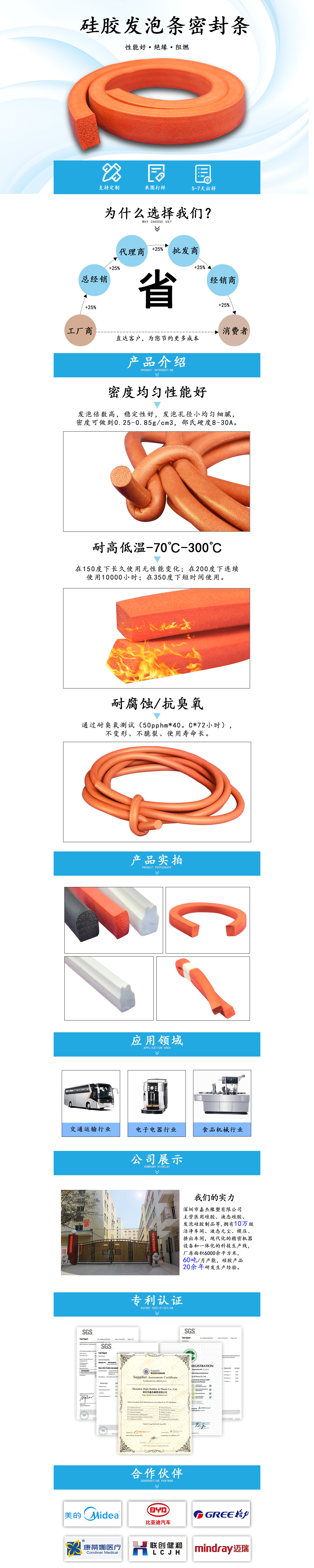硅膠發泡密封條用途:廣泛適用于熱熔設備、電熱電器行業的保溫隔熱;機械、汽車等行業的緩沖減震。硅膠海綿密封環、發泡硅膠海綿自粘密封墊、耐高溫硅膠發泡密封框、石油、化工、醫藥、冶金、機械、儀器儀表、電力、瓶罐密封、汽車、玩具等行業。